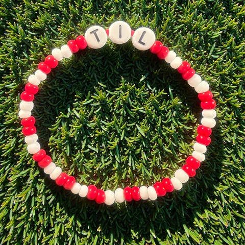 Fotballarmbånd - Håndlaget med kvalitetsperler og elastisk strikk.
