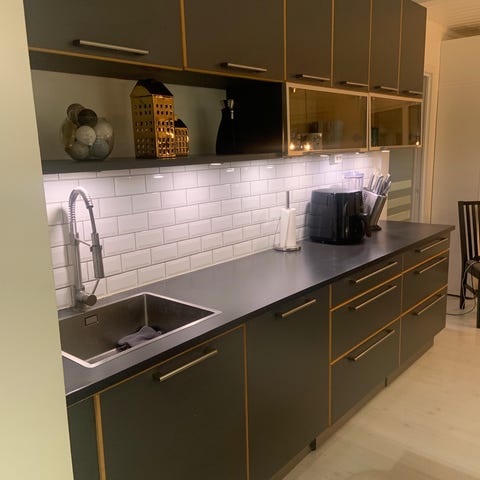 Pent brukt Solid Eik komplett kjøkken med sort granitt plate. Selges komplett. Kan hentes på Lørenskog etter avtale. Kjøkkenet er demontert og klar for henting.
