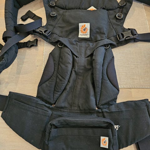 Ergobaby Omni 360 i grå farge. Justerbar for å passe ulike kroppstyper. Laget for å bære barn i forskjellige posisjoner med fokus på komfort og støtte.