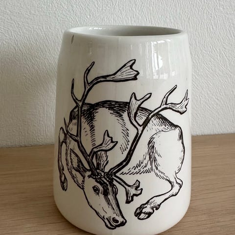 Pent fat med motiv av den kjente norske forfatteren Alexander Kielland. Kan henges på vegg. Samleobjekt?