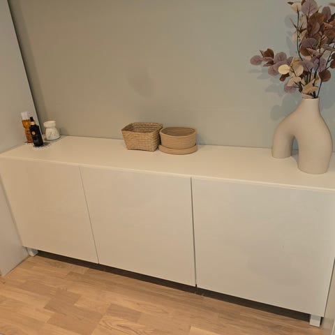2. En kommode med skooppbevaring, 80 x 35 x 102 cm (lengde x bredde x høyde).