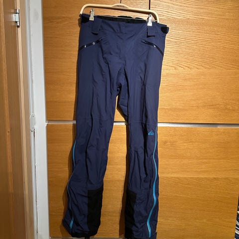 Snøbeskyttelse innvendig nederst på bena, med knapp og strikk nederst.