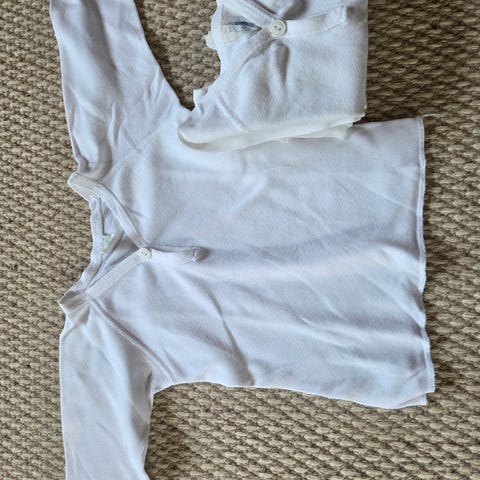 2 stk konge blå med lysegrønn stripe v arm hulene str 80