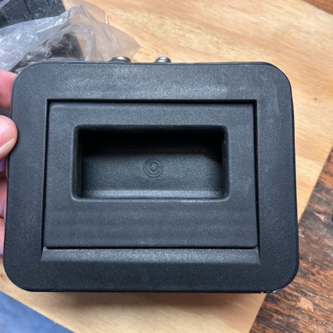 Materiale: Den er laget av slitesterk, svart plast (polyamid) med metallbolter for montering.