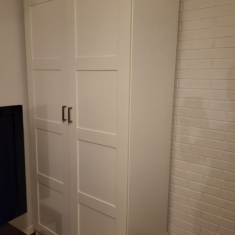 Romslig skap med avlang speil som passer fint i de fleste hjem.