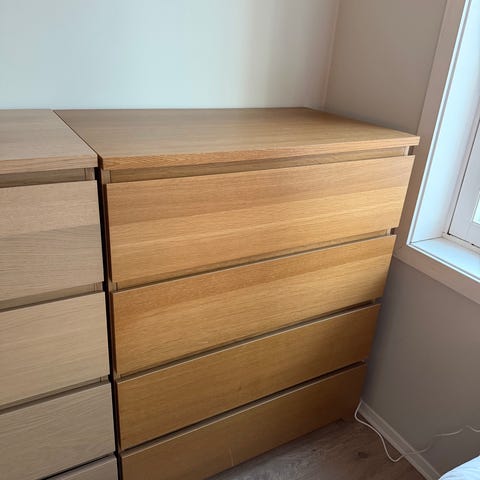 2 stk hvitbeiset eikefiner IKEA Malm kommoder, selges samlet for 1500 kr.