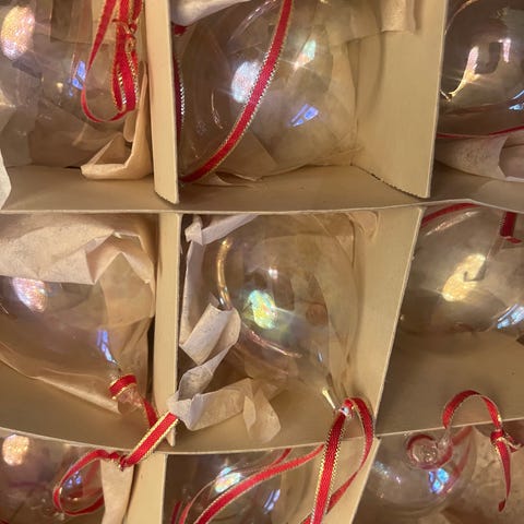2 stk i blå farge, 1 i klart glass med perlemorskinn.