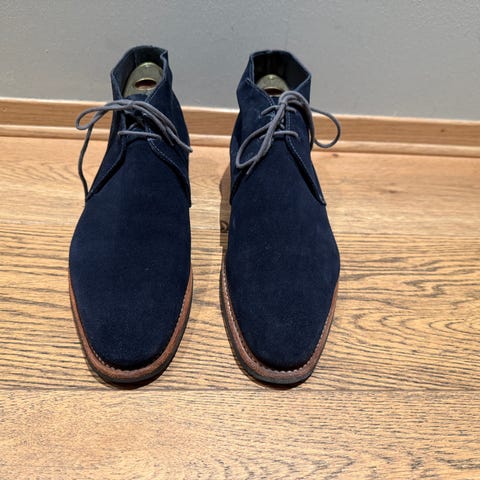 Jeg har betalt for metal tips på disse, kombinert med en sole saver som er usynlig men som kan spare en omsåling over tid. Skoene har også fått en custom patina (antigueing).