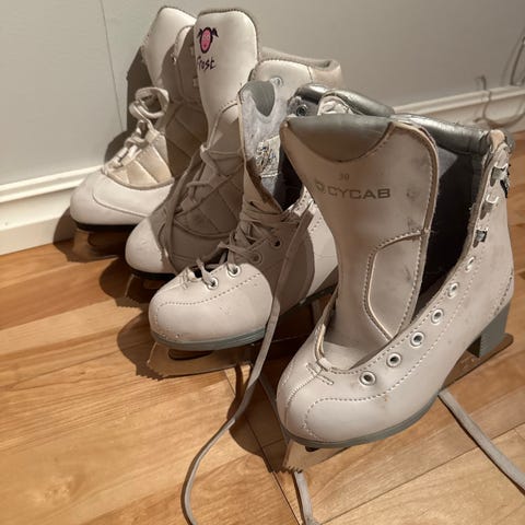 Velbrukte kunstløpskøyter i str 37/38 (det står 38, men de var for små for mine 38-føtter). Smal passform.