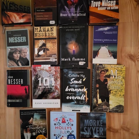 Alt mulig av bøker selges flest med Norsk tekst og noen med engelsk og svensk tekst🥰