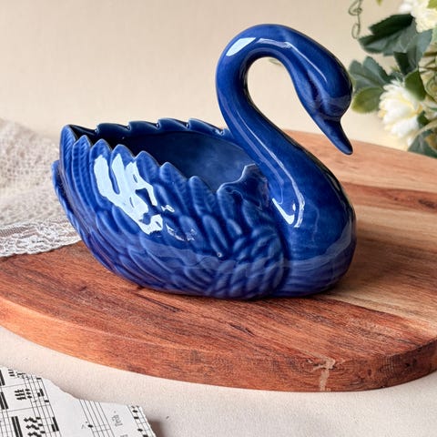 Blå svane i keramikk – dekorativ skål / figur 🦢