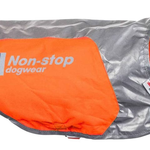 Selger refleksvest til hund fra Non-stop Dogwear i synlig oransje/grå med refleksdetaljer. Brukt i en overgangsfase – kjøpt brukt selv, men fortsatt mye liv igjen.