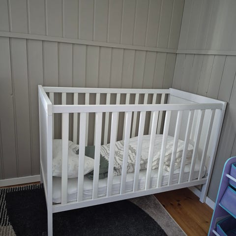 Sprinkelseng med ny padrasa, madrassbeskyttelse og sengekant. Alt nytt forutenom senga i 2024. Ble aldri tatt i bruk da mini aldri flytta fra oss i storsenga🥰 Senga kjøpte vi brukt selv, men er ej kjempefin seng uten noen skader.