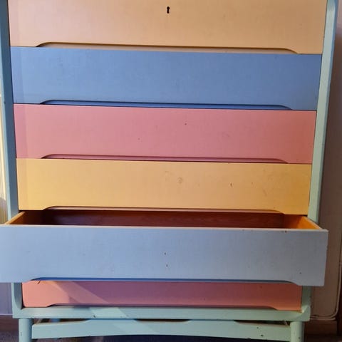 Hyllene tas lett ut og inn. Den er litt lealøs når den er tom. Må hentes.