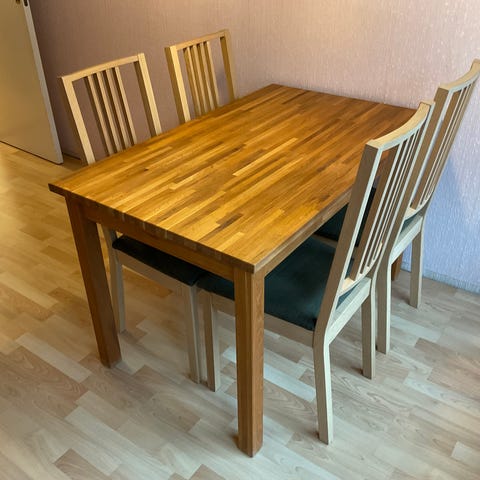 Lite kjøkkenbord 80×80 , som blir 120 når det trekkes ut. Ingen bruksmerker.