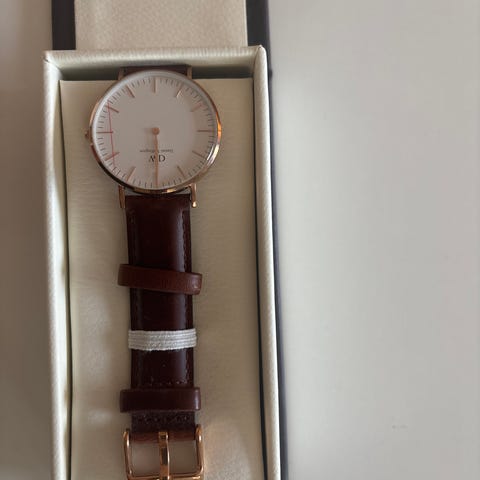 Ny Dyrberg Kern klokke med mørkebrunt skinnreim.