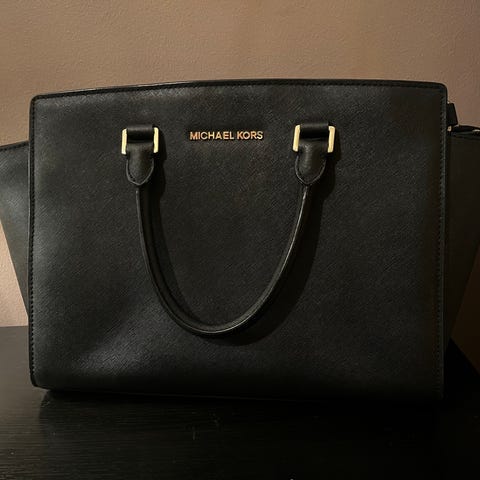 Michael Kors Selma tote. Vesken er i praksis ubrukt, brukt kanskje to ganger. denne vesken har doble topphåndtak og et romslig stoffforet interiør
