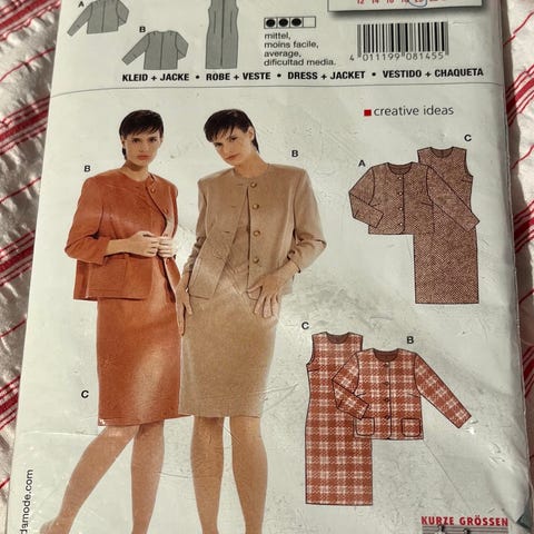 Symønstre for dameklær fra 1960 -1970 tallet . Ikke vært brukt , ligger uåpnet i original pose . Mønstre for ulike plagg som kjoler, bluser og jakker. Mønstrene er egnet for sying av klær i klassisk stil og kan brukes til å lage flere typer dameantrekk. Selges for 40,- kr . per stykk + porto . Fiks ferdig ikke aktuelt .