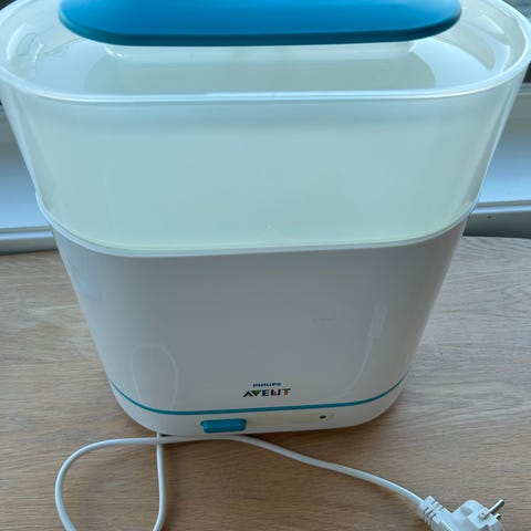 Phillips avent sterilisator selges. Superenkelt å sterilisere flasker og smokker. Kan brukes både med og uten den store beholderen (til flasker).
