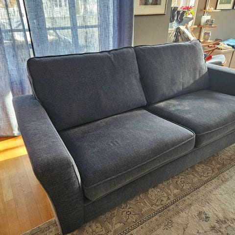 Pent brukt sofa, tykke puter så god å sitte i,og den holder godt på fasongen.