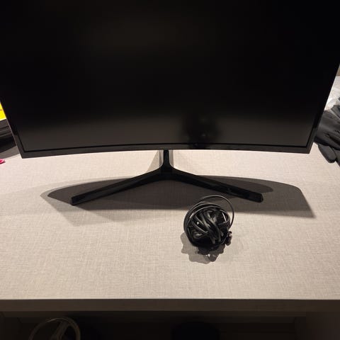 Samsung C27F390 27 tommer skjerm med buet design. Skjermen har HDMI-tilkobling og svart farge. Egnet for bruk med PC eller andre enheter som støtter HDMI.