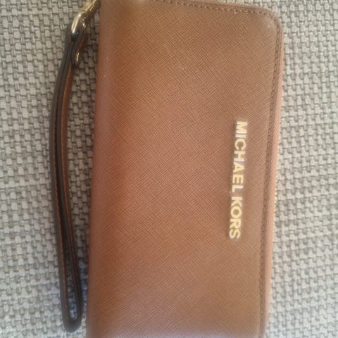 MICHAEL KORS brun skinn-lommebok med gull innside og detaljer - 450kr