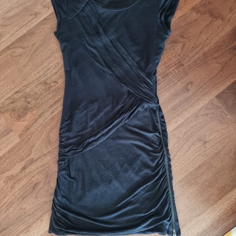 GUESS kjole i svart fløyel, størrelse S. Langermet kjole med utskjæring foran, laget i mykt fløyelsmateriale. Litt stretch i stoffer.