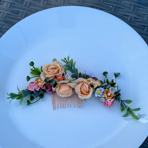 Selger en hårpynt som passer best til langt hår med blomsterdetaljer og diamanter (ikke ekte). I tillegg selger jeg noen ubrukte hårnåler med perler i enden. Begge deler passer ypperlig i et bryllup, til fest eller andre selskaper som konfirmasjon og dåp.