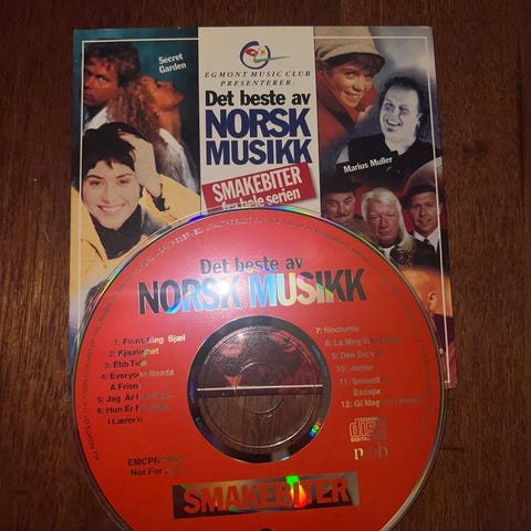 Busserullen Musikk-CD med 14 spor, inkludert sanger som 'Vestlån gjæser går' og 'Mormor i vind'. CD-en inneholder tradisjonell og folkemusikk.