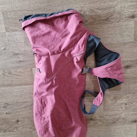 Trine hundedekken i rød fleece. Dekkenet er designet for å gi varme og komfort til hunden, med justerbare stropper for god passform. 30cm