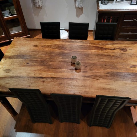 Spisestue med rundt bord og 6 stoler