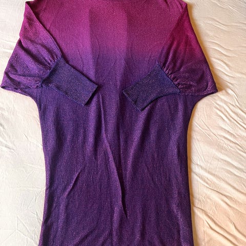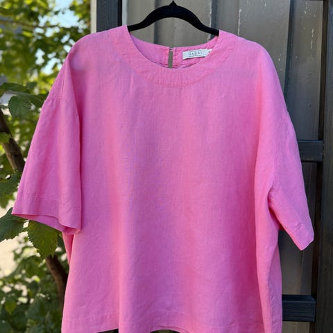 Behagelig og luftig topp i strikket lin, fra Masai. Mørk rosa/rosalilla farge. Toppen er lite brukt, i god kvalitet.