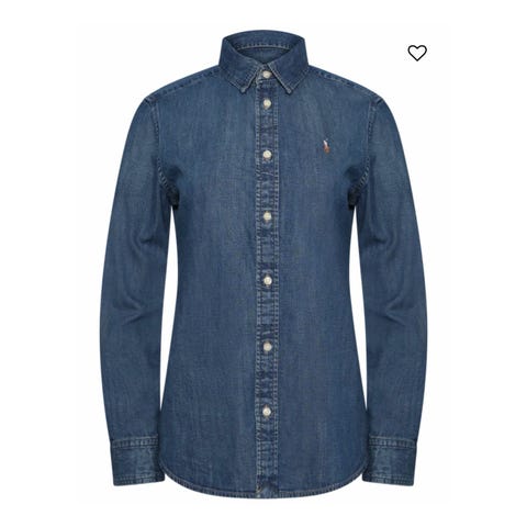 Ralph Lauren Polo skjorte i blå bomull, størrelse L for kvinner. Slim fit passform.