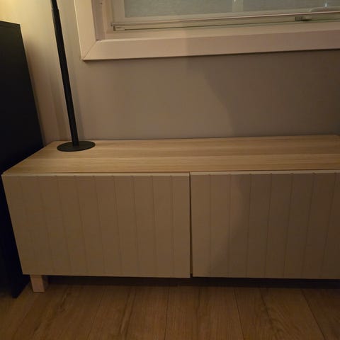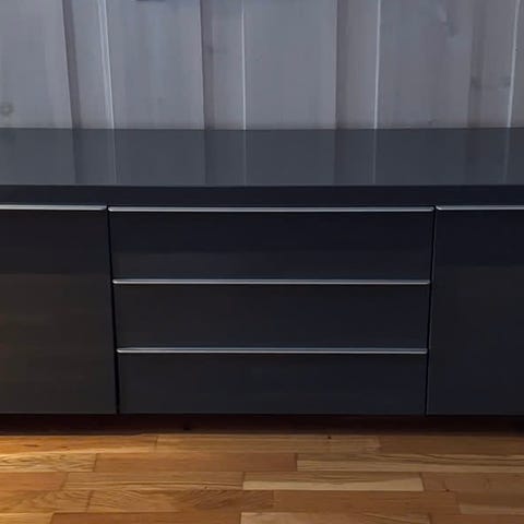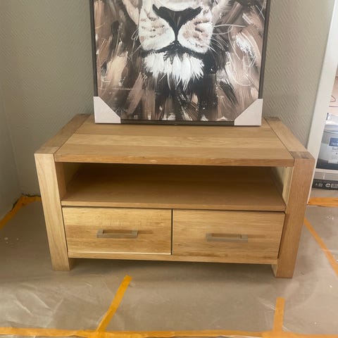 TV-benk i valnøttfarge. En av skuffene er løsnet i festet. Derfor den lave prisen.