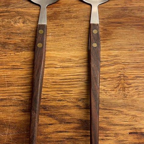 Pent helle bestikk selges. Vintage med teak håndtak.