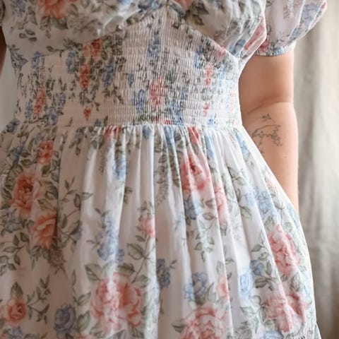 Newbie kjole i flerfarget mønster, størrelse M. Laget av bomull. Nydelig kjole med fine volanger og detaljer. Selges da den ikke passer.