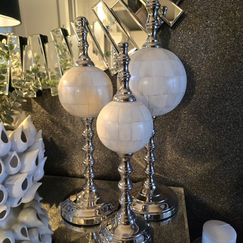 Pen dekorkule i glass til å henge i vindu e.l. i fin ferskenfarge. Brukt til styling ved boligsalg.