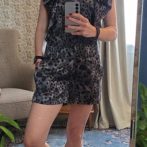 Fint snitt som sitter litt løst på overkroppen og litt tettere på midjen før den går ut i løse ben. Ekstremt deilig å ha på.