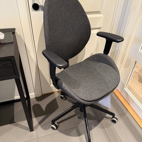 Fin kontorstol med regulerbar nakkestøtte og armlener