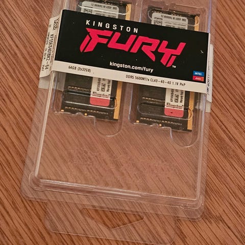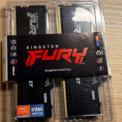 Kingston Fury DDR5 RAM med totalt 64GB kapasitet fordelt på to moduler à 32GB.