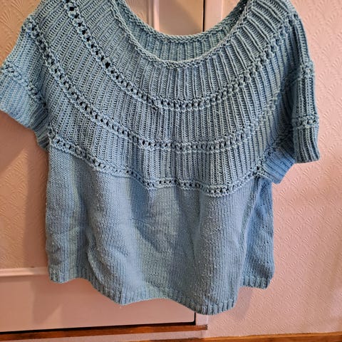 Kort ermet damegense. Rosa med striper. Stø XXL. Pris 75. Pluss porto