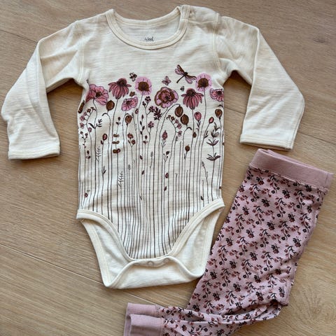 Body og bukse i ull/bambus-blanding kjøpt i vinter fra Hust&Claire. Pent brukt uten synlige merker.