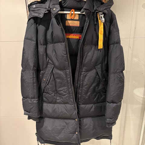 Parajumpers vinterjakke i størrelse M for kvinner. Jakken er svart og laget av dunmateriale, som gir isolasjon og varme. Den har hette med pelskant og glidelåslommer. Jakken er designet for kalde værforhold.
