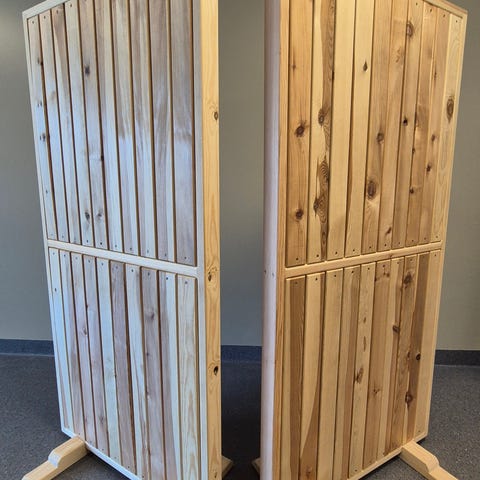 Foldeveggen ble kjøpt til et nytt bygg, men ble aldri montert. Bildene er hentet fra Trysil Byggprodukter sin nettside.