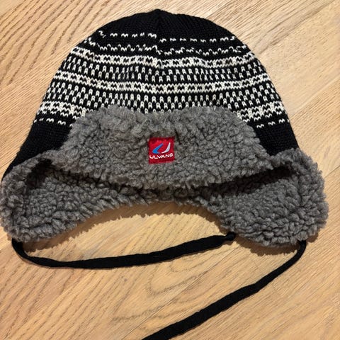 Ulvang Bugøynes lue selges - den har foret innside for ekstra varme og knytebånd for feste under haken.