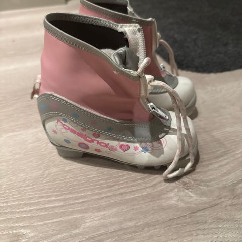 Rossignol Powah langrennssko for barn i rosa og hvit farge. Skoene har glidelås på framsiden og er dekorert med hjerter. Egnet for barn som bruker langrennsski.
