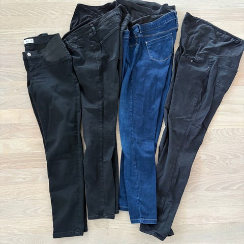 Selger hvite gravidjeans i str 4 (34/36). Buksen er fra GAP og har et hudfarget belte øverst som gjør at jeg følte jeg fikk et avbrekk fra de klassiske tøystykkene på andre gravidbukser.