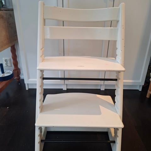 Forholdsvis lite og pent brukt mellomgrå Tripp Trapp stol fra stokke selges. Har flaket av litt maling noen få steder på setet, men fremstår fortsatt som fin å se på.