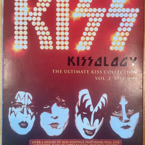 KISS CD/DVD med musikkvideoer og liveopptredener. Inneholder titler som 'KISS 1983', 'Hotter Than Hell' og andre. Format: CD/DVD