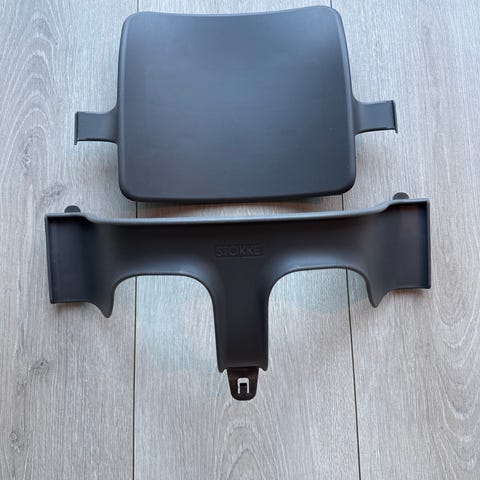 Stokke Tripp trapp barnestol i fargen valnøtt. Justerbar sitte plate og fotplate for tilpasning til barnets størrelse. Designet for å gi støtte og komfort under måltider eller aktivitet ved bord. Passer med både baby set for nyfødt og barnesete i plast ( rygg og bøyle). Vil si stolen er godt ivaretatt, ingen store skavanker. Tåler godt bruken, og er lett å rengjøre.